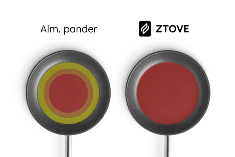 Med 6 mm aluminium i bunden får du en markant bedre varmefordeling end med normale rustfri stål pander.