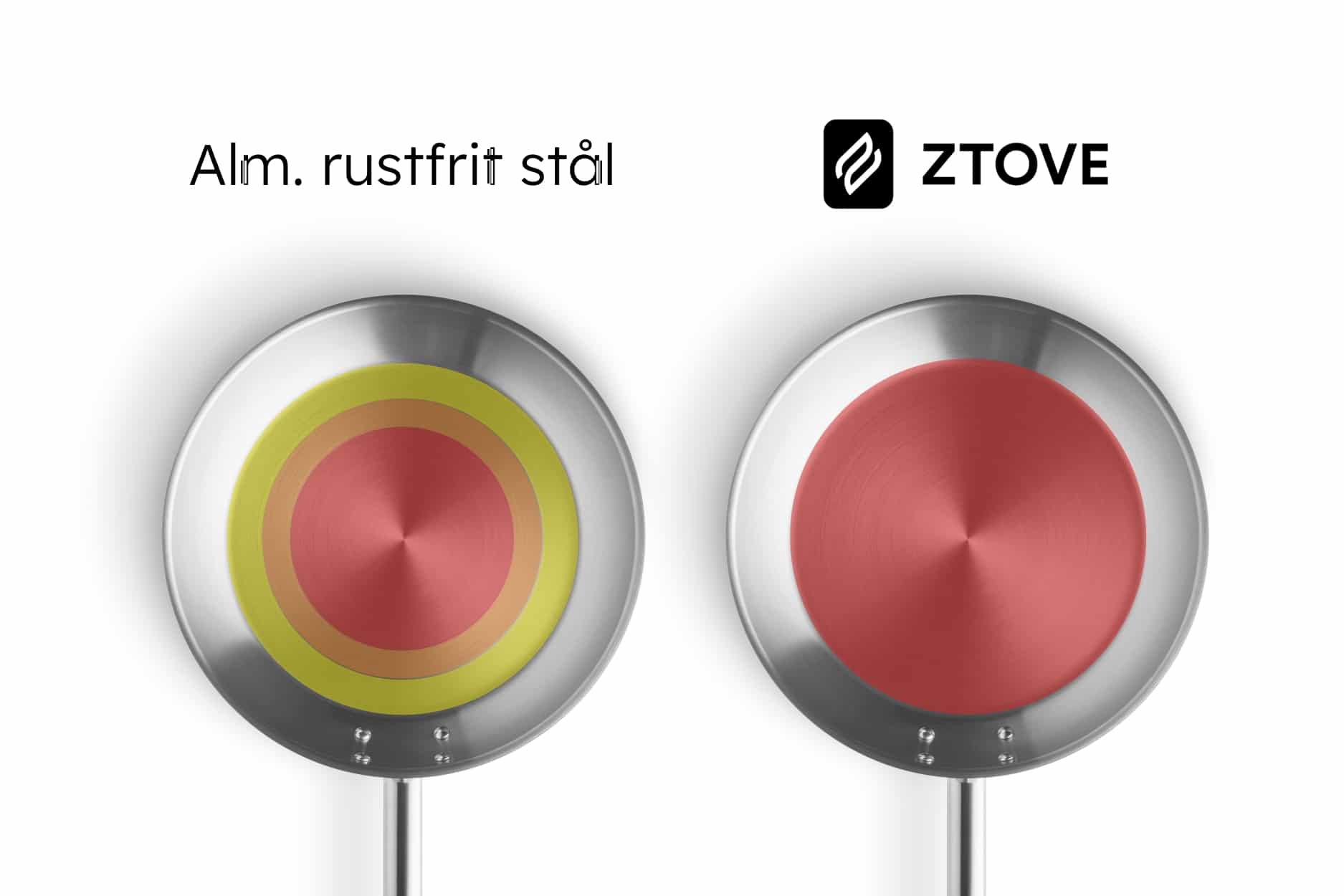 Med 6 mm aluminium i bunden får du en markant bedre varmefordeling end med normale rustfri stål pander.