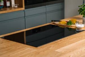 Du kan også planlime din kogeplade. Her bliver der skåret et lille ekstra hul i bordpladen, så kogepladen sænkes ned og ligger plan med bordpladen.