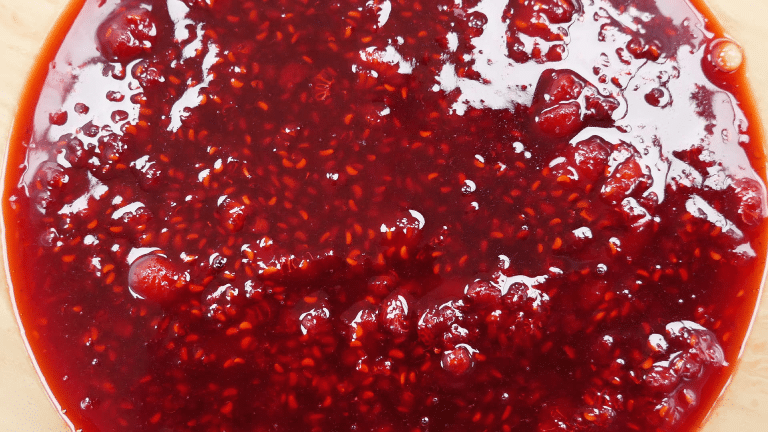 Usually, raspberry jam is made with equal parts sugar and berries, as the sugar helps to preserve the jam.