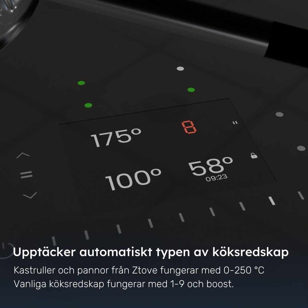 Med Ztove kan du använda traditionella induktionskastruller precis som vanligt med nivåerna 1-9 och boost.