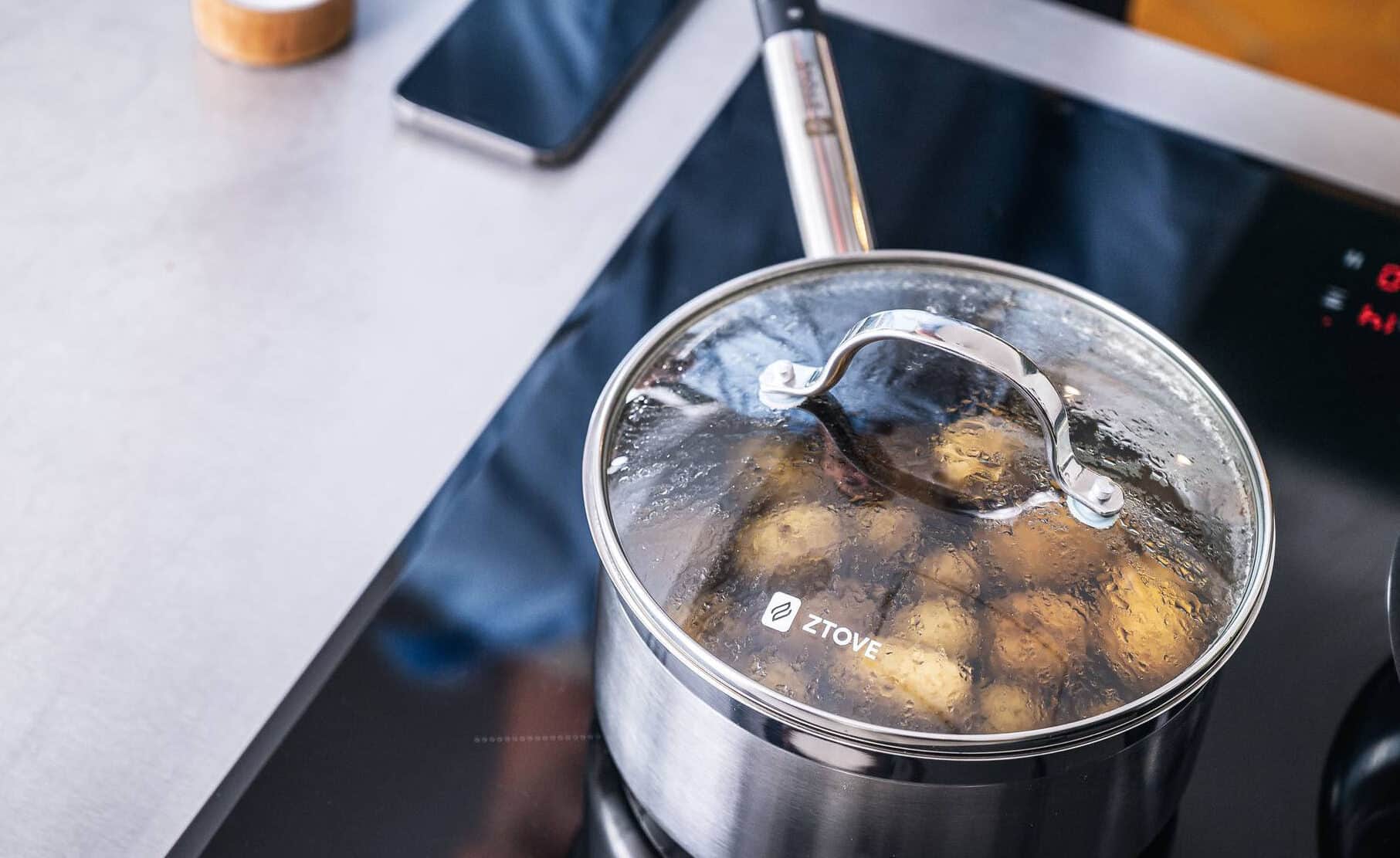Med Ztove är det enkelt att laga mat med lock. När du kokar potatis eller pasta kan du ställa in temperaturen till 100°C. Din mat kommer att tillagas något långsammare än vid en häftig kokning, men den kommer att smaka bättre eftersom färre mineraler kokas ut i vattnet, och du sparar mycket energi.