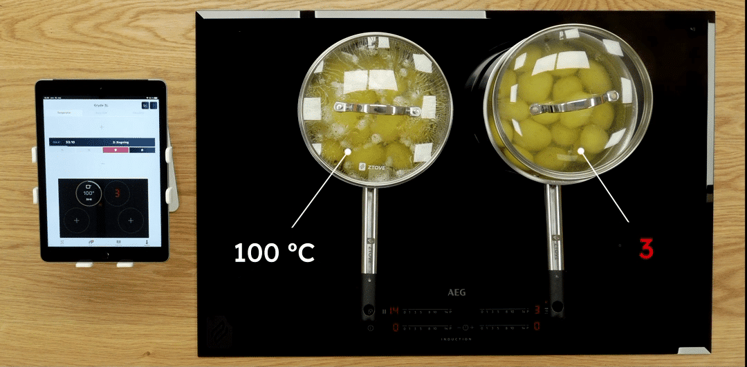 We have done an experiment where we cook potatoes in two pots. One with temperature control and one without. The results are unmistakable – cooking potatoes with Ztove is just easier. You can see why in the video here: